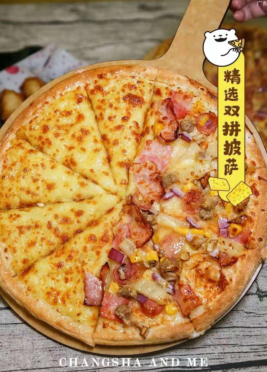 喜欢尝试不同口味的吃货,可以选择双拼披萨。一块披萨就可以享受双重惊喜。
